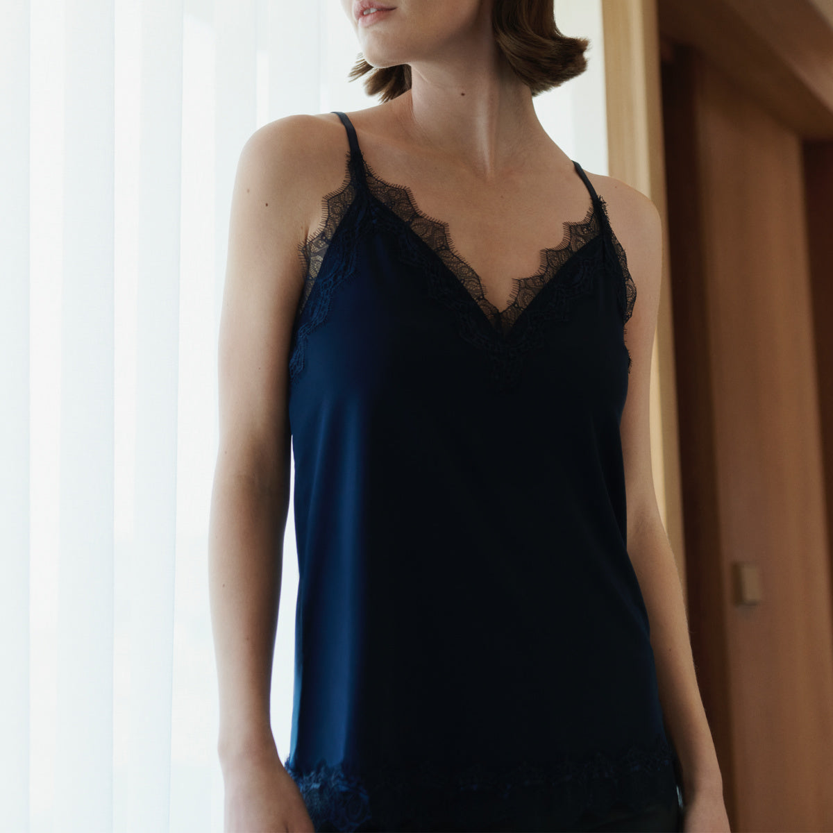 Bomuldstop Med Blonder Sort