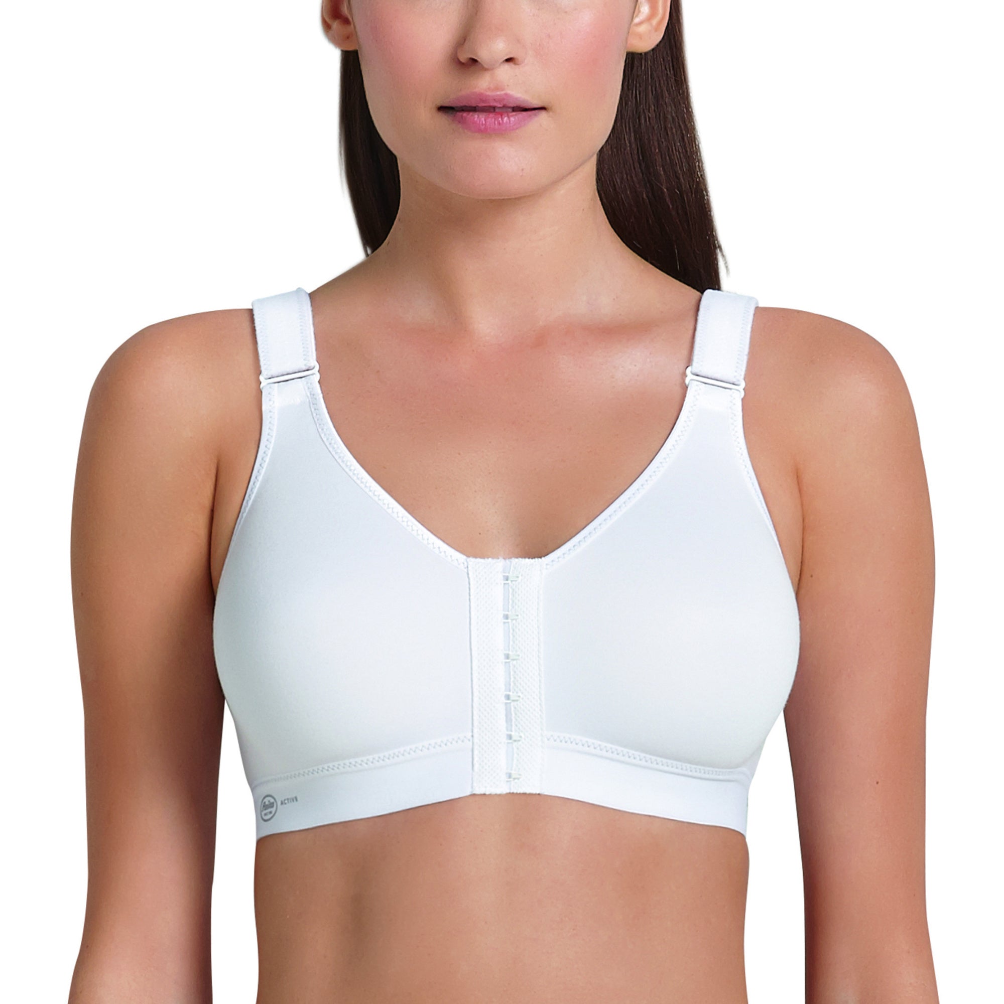 Anita Sports BH. Super fin Anita Sports BH med lækre detaljer. Denne Anita Sports BH er lavet af meget funktionel, åndbar og svedtransporterende bomulds microfiber. Skålene er sømløse og formstøbte. Komfortstropperne er fuldt justerbarer ved hjælp af velcrolukningen, som sidder fortil. Anita Sports BH giver en god medium støtte og support til barmen og har et dejlig enkelt look. Fås både i sort og hvid og passer perfekt til f.eks. pilates, styrketræning, yoga m.m.