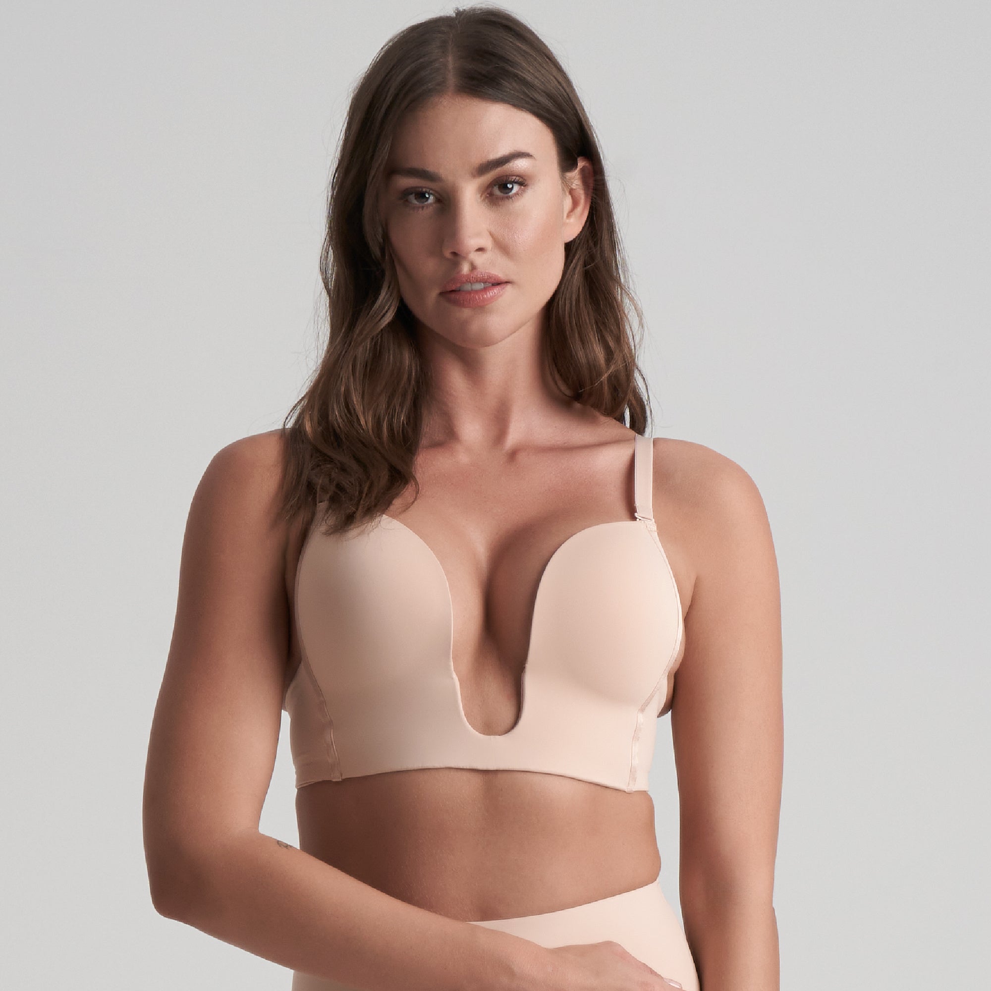 Skøn BH til Dyb Udskæring og naturlig push-up effekt fås i størrelser fra S-XXL. Med denne BH til Dyb Udskæring får du et clean look under dit outfit og en bred støttende underbust, der hjælper med at holde din flotte barm. Stropperne er justerbare og multifunktionelle, så du kan sætte dem lige præcis efter dit behov og outfit.