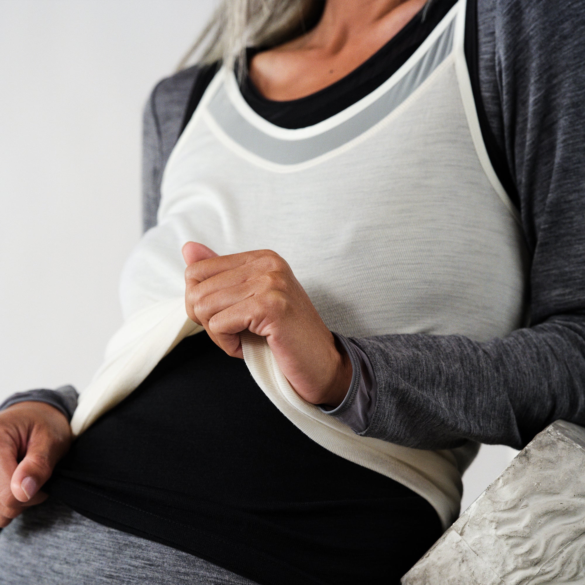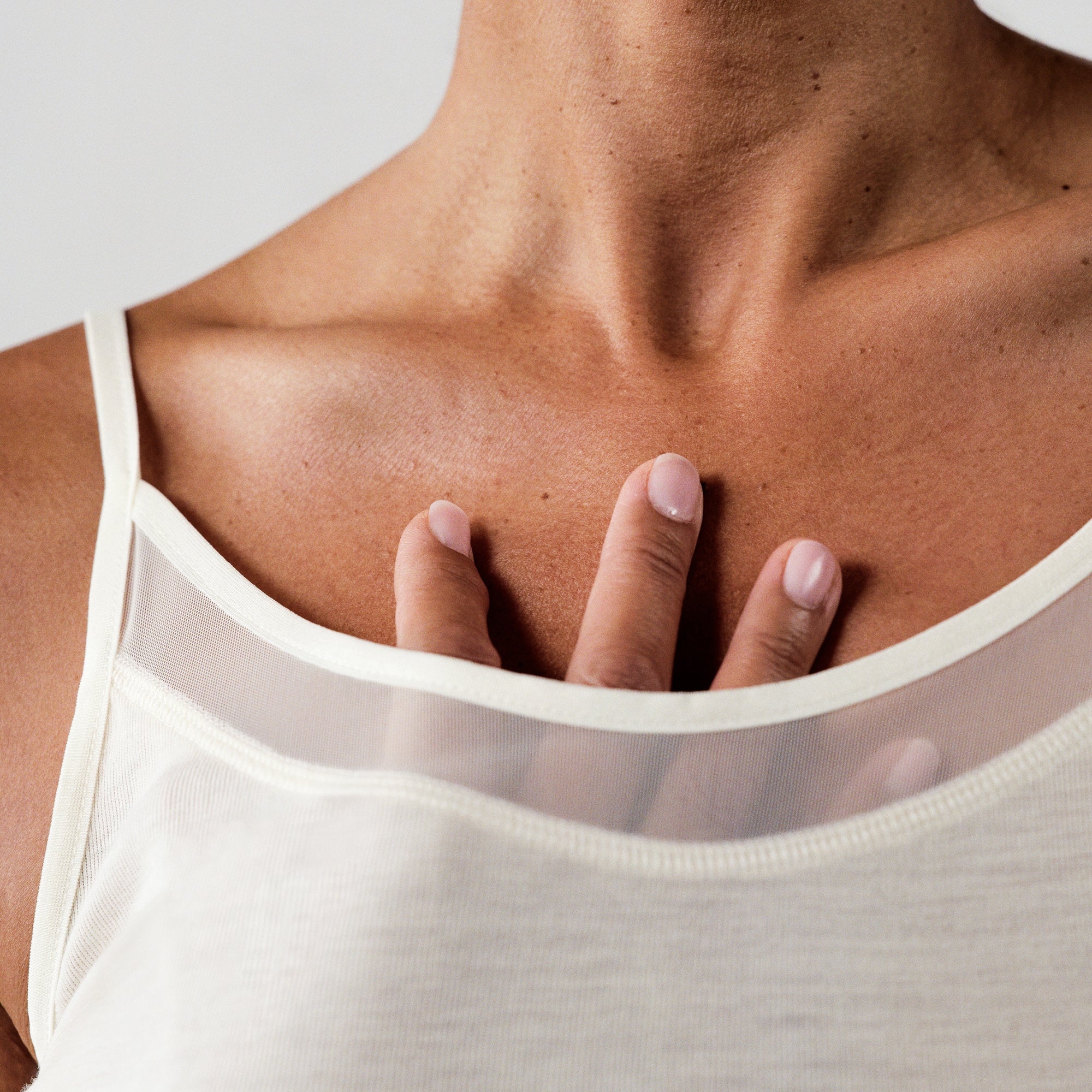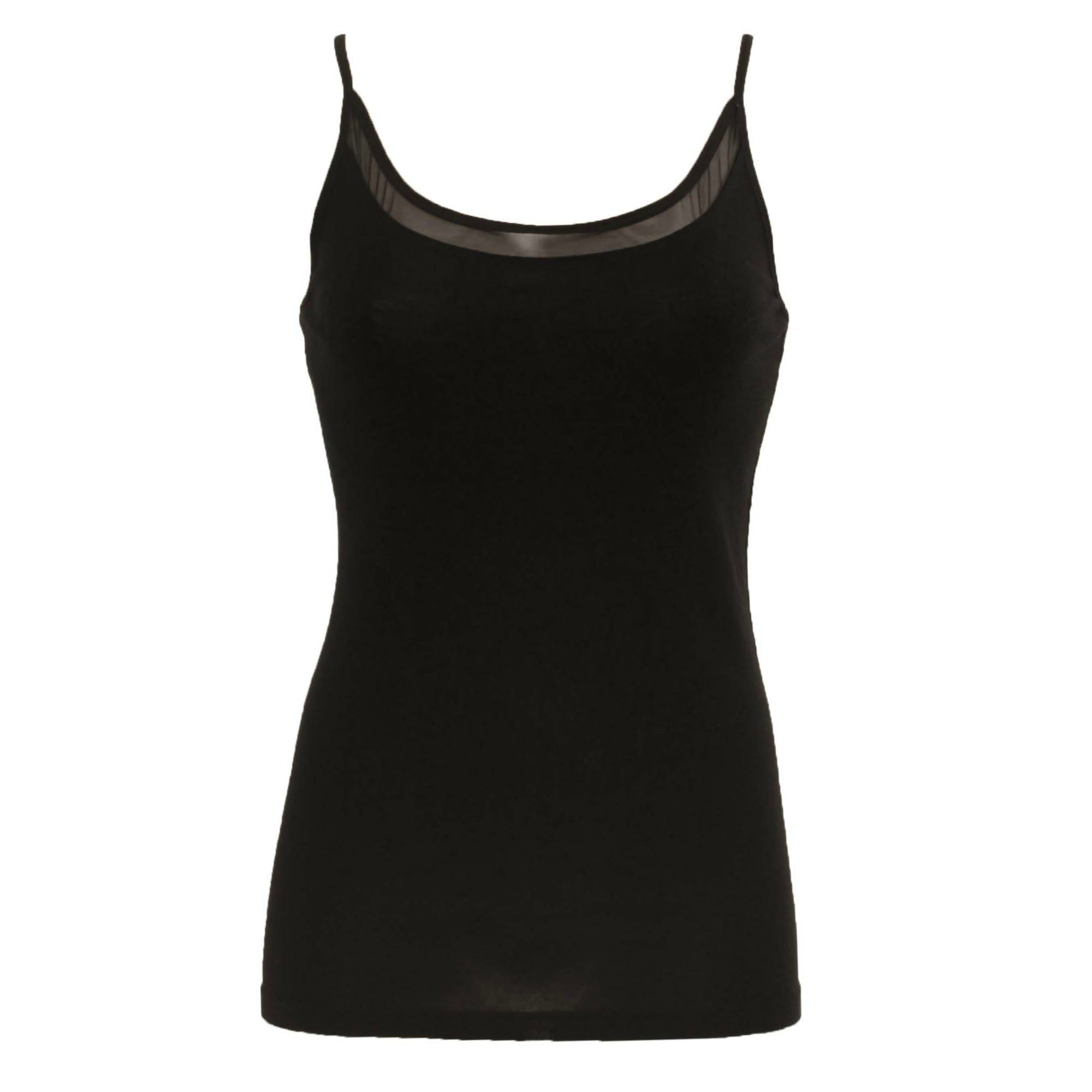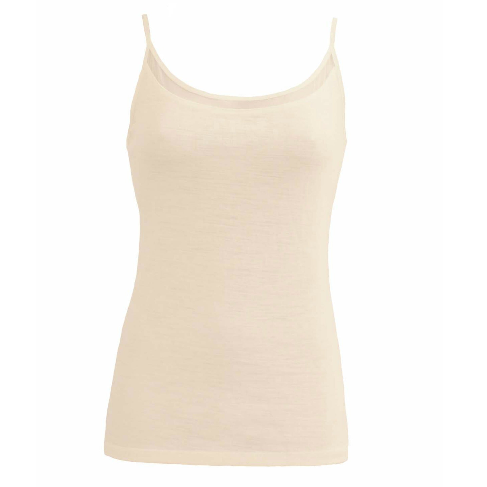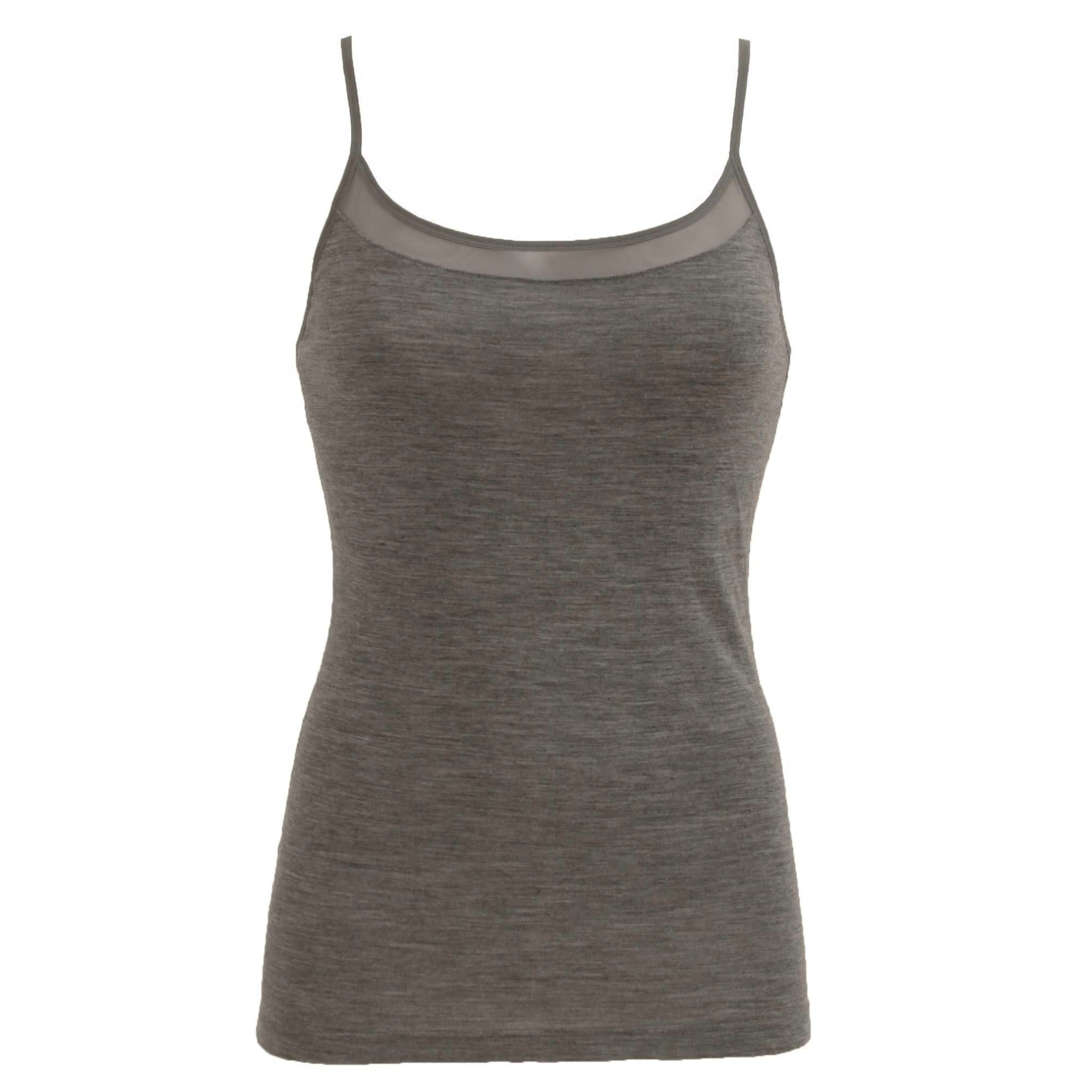 Juliana Chemise Top. Feminin og enkel top i 100% uld fra Femilet. Denne elegante Juliana Chemise Top kan købes i grå, ivory og sort. Den er perfekt året rundt, idet uld tilpasser sig kroppens temperatur. Juliana Chemise Top har en fin mesh detalje foroven ved halsen, samt tynde stropper.