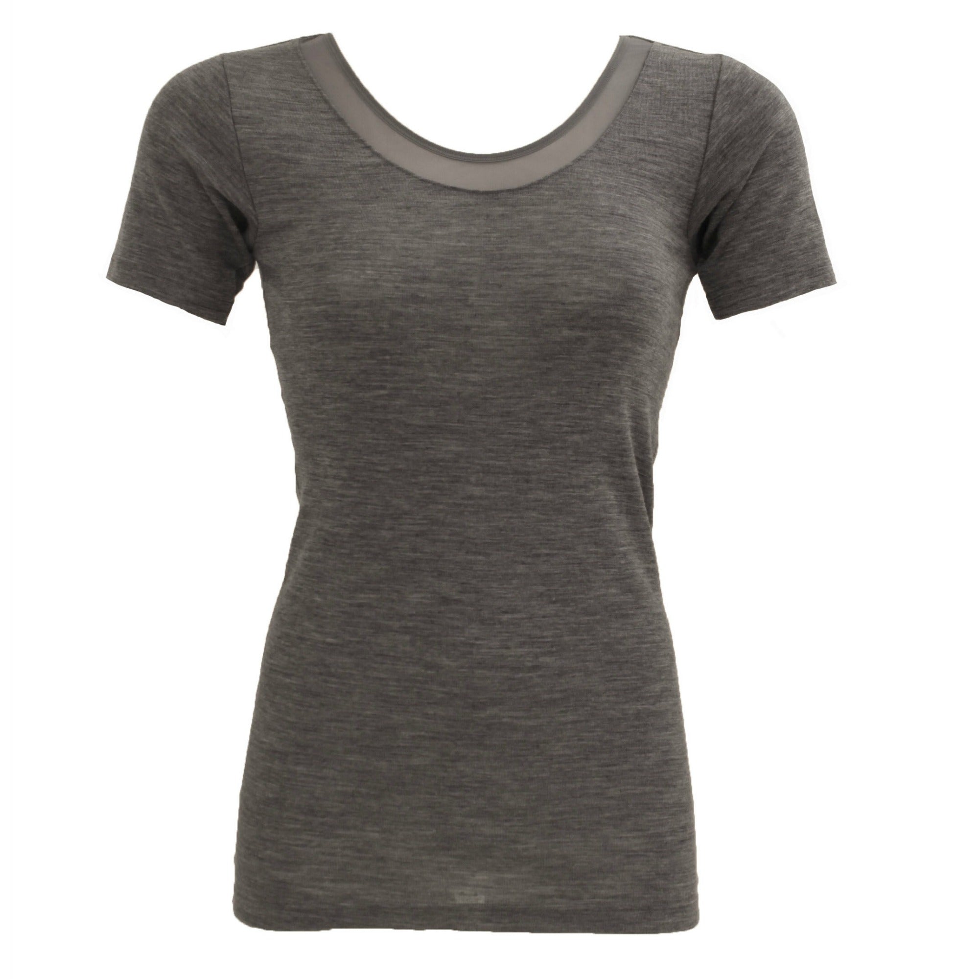 Juliana T-shirt Uld. Denne super lækre t-shirt i 100% uld fra Femilet har en super pasform med en fin mesh detalje langs halsen. Juliana T-shirt Uld fås i grå og sort, størrelse 36-48. Den er gode til alle aldre, og både i kølige og lune sæsoner, idet uld altid tilpasser sig kroppens temperatur.