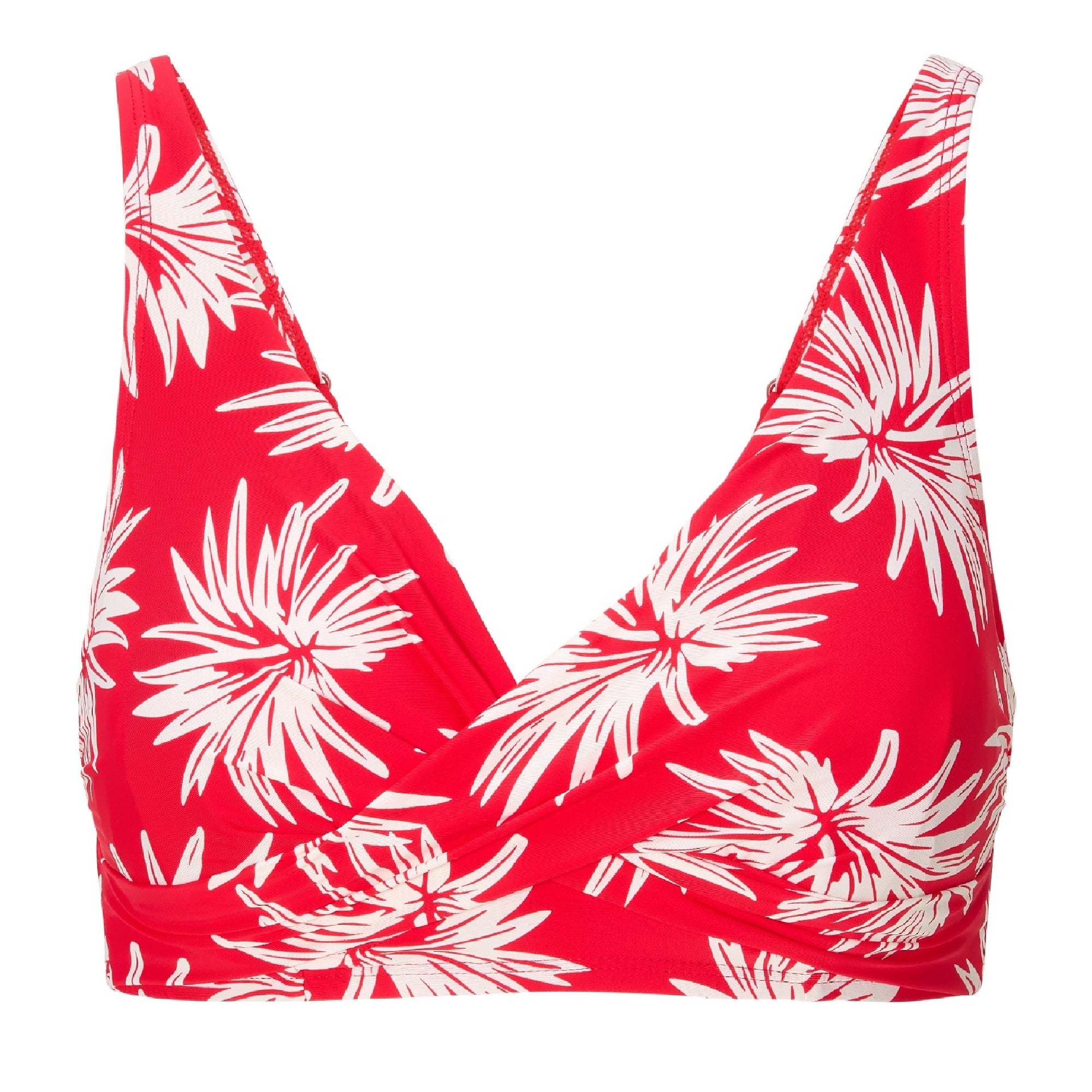 Toppen er ikke-vatteret og designet specielt til større skålstørrelser D–F, hvor bøjlen sikrer optimal støtte, mens de justerbare stropper giver mulighed for en skræddersyet pasform og maksimal komfort. Den fine wrap-over-detalje foran tilføjer et legende og feminint twist til designet.