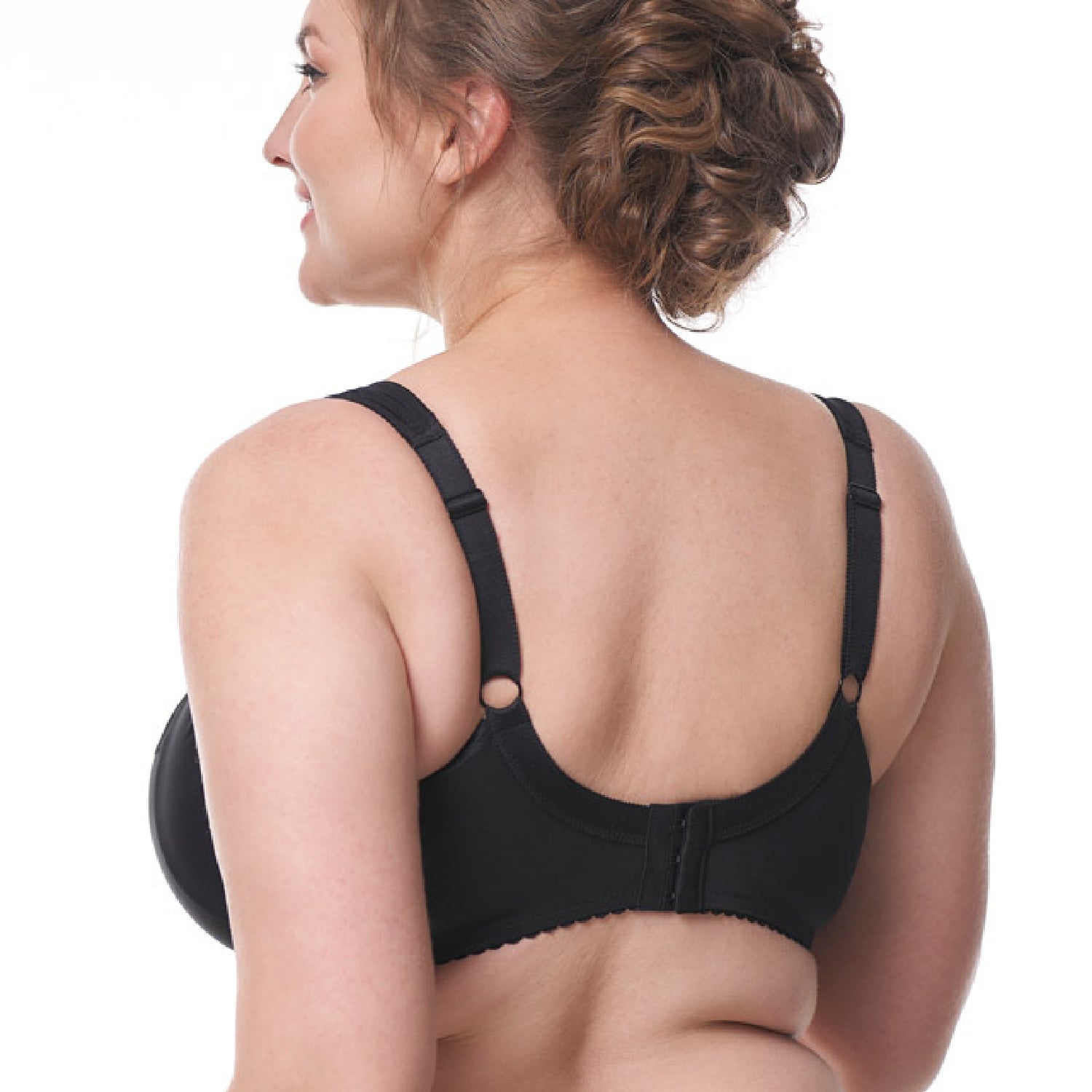 Denne nye model er udviklet til at give komfortabel støtte til den tunge barm. BH’en er konstrueret med brede sidevinger, bredt bælte, forstærket ryg og vatterede stropper, som ikke gnaver i skulderen.