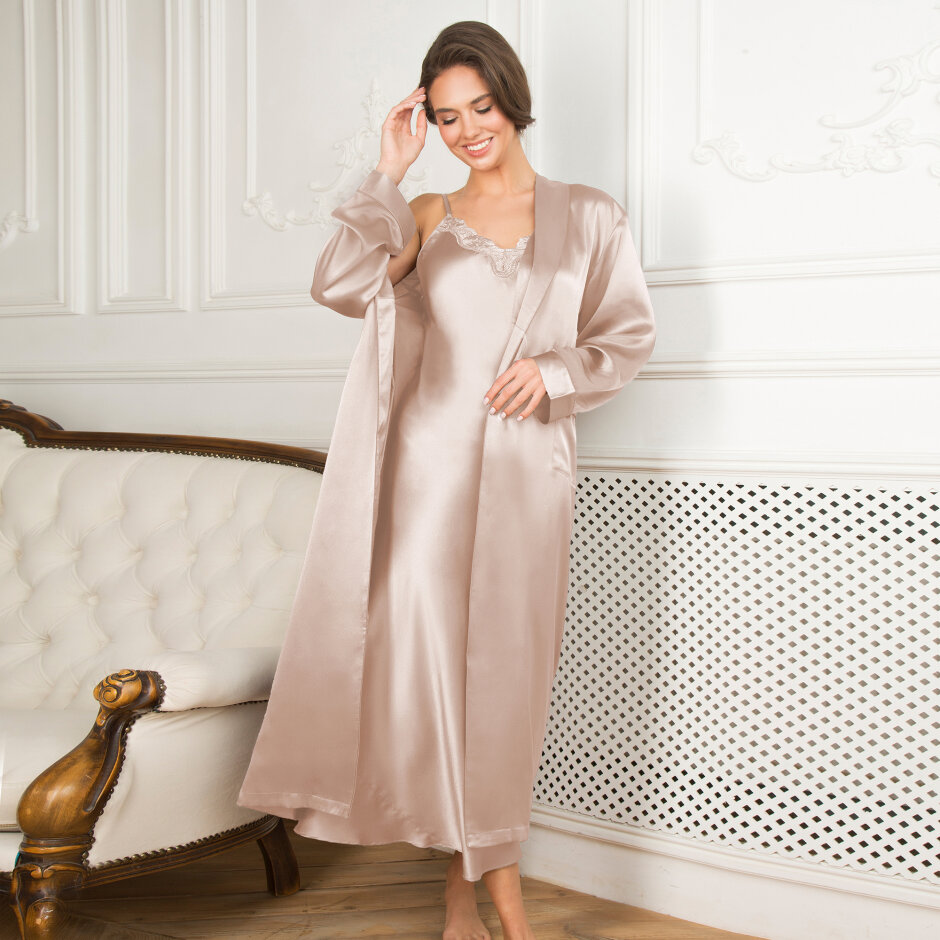 Natkjole i Silke med ærme Bailey