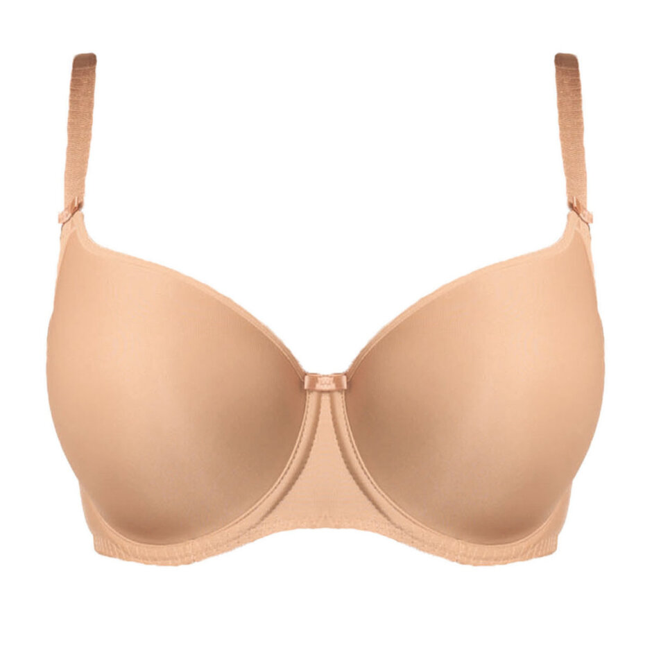 Smoothing T-shirt BH Nude. Virkelig smuk Glat T-shirt BH. Denne Glat T-shirt BH er i en flot skin farve. Udover det smukke enkle design og den gode kvalitet, så er det gode ved denne Glat T-shirt BH, nemlig det glatte materiale som gør den ses mindst muligt gennem tøjet. Glat T-shirt BH har en let vattering, der former barmen flot.