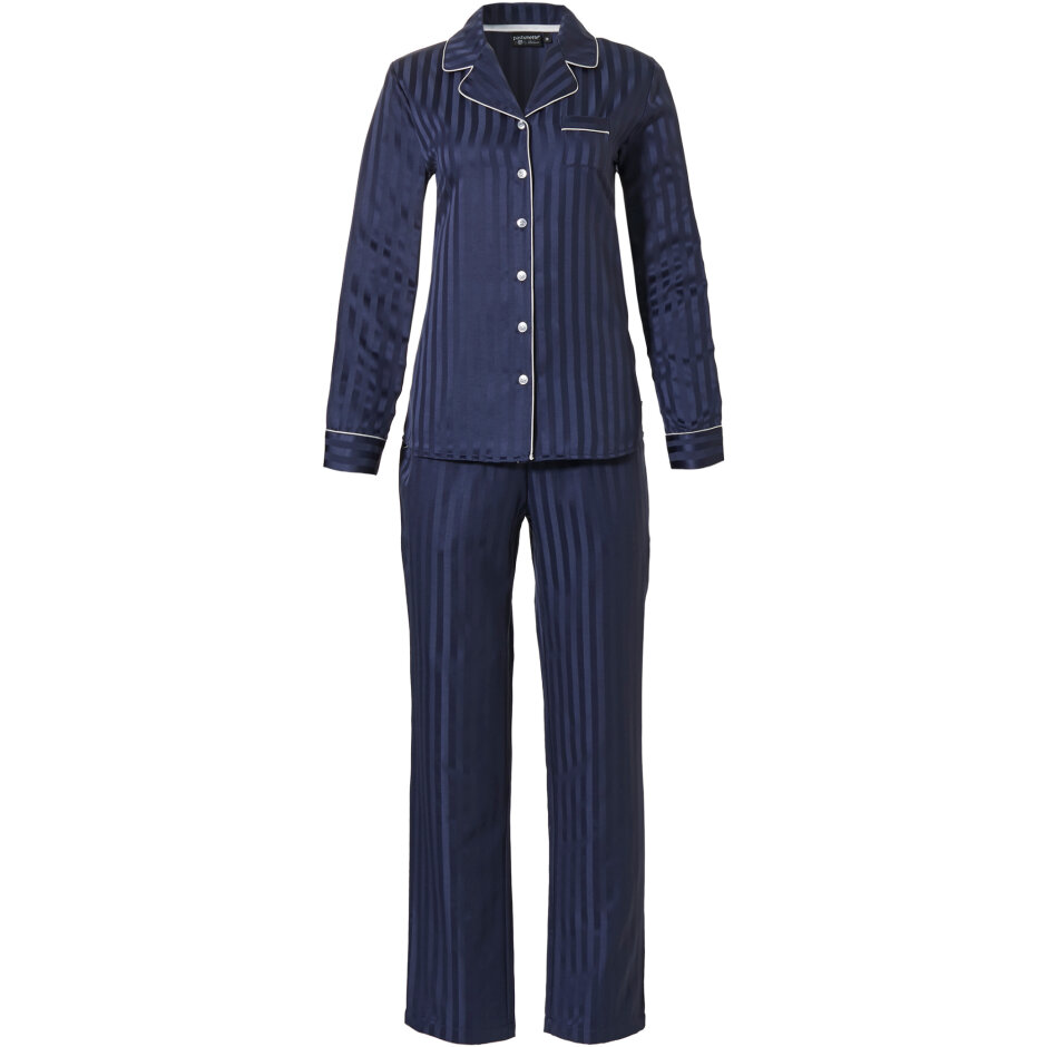 Pastunette Pyjamas med Knapper Dark Blue er en lækker todelt pyjamas, med pyjamas bukser og en pyjamas skjorte. Denne todelt pyjamas er superfin i et let og komfortabelt materiale. Du får en lækker todelt pyjamas med fede detaljer, der fungerer som det perfekte hyggesæt eller nattøj. Mangler du en behagelig pyjamas med print er en Pastunette Pyjamas med Knapper Dark Blue den rette.