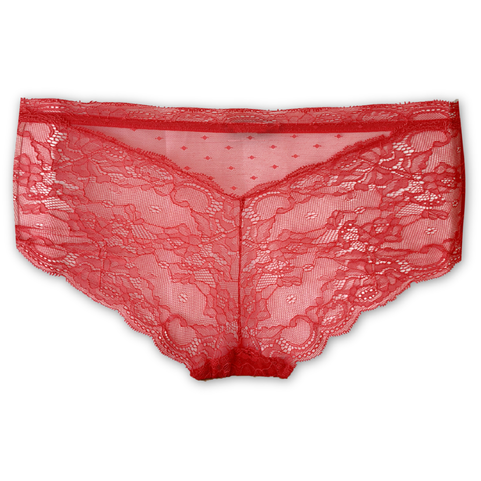 Wow Waisthigh Brief Rød. Elegant højtaljet tai trusse med de fineste tynde sorte blonder, som giver et let og virkelig feminint udtryk. Denne Wow trusse kan både fungere virkelig godt som en almindelig højtaljet tai trusse og som en mere 'skrå' model vist på billedet bagfra. Denne højtaljet tai har en blød og smal elastik kant i taljen, og et lille feminint vedhæng foran på blonderne.