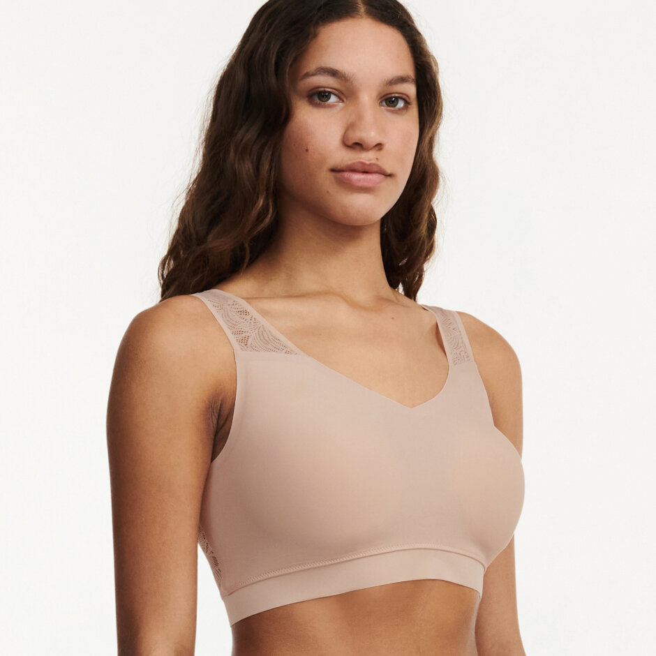 Oplev den nye Soft Stretch Vatteret Top Lace i farven, Golden Beige fra Chantelle. Vatteret Top Lace er en lounge-bh, der kombinerer elegance og komfort. Toppen er designet med tidløs blonde på stropperne og hele ryggen, som giver et mere feminint og moderne look. Lounge-bh'en er fremstillet i et 360° strækbart stof, som tilpasser sig perfekt til alle kropsformer, helt op til størrelse 90H. Toppens bløde tekstur og sømløse konstruktion sikrer en fantastisk komfort, mens de ikke-aftagelige puder giver optimal støtte hele dagen. Den perfekte lounge-bh, fås i flere farver.