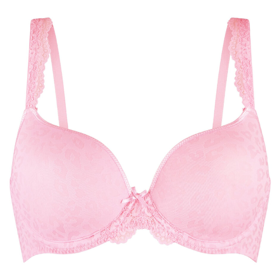LingaDore Daily T-Shirt BH i farven Rose Shadow Jacquard kombinerer komfort og elegance med et feminint touch. De bløde, vatterede kopper i spacer-materiale er runde og glatte med et diskret leopardprint, hvilket giver bh’en et moderne og legende look. En lille sløjfe mellem kopperne tilføjer et charmerende detalje.