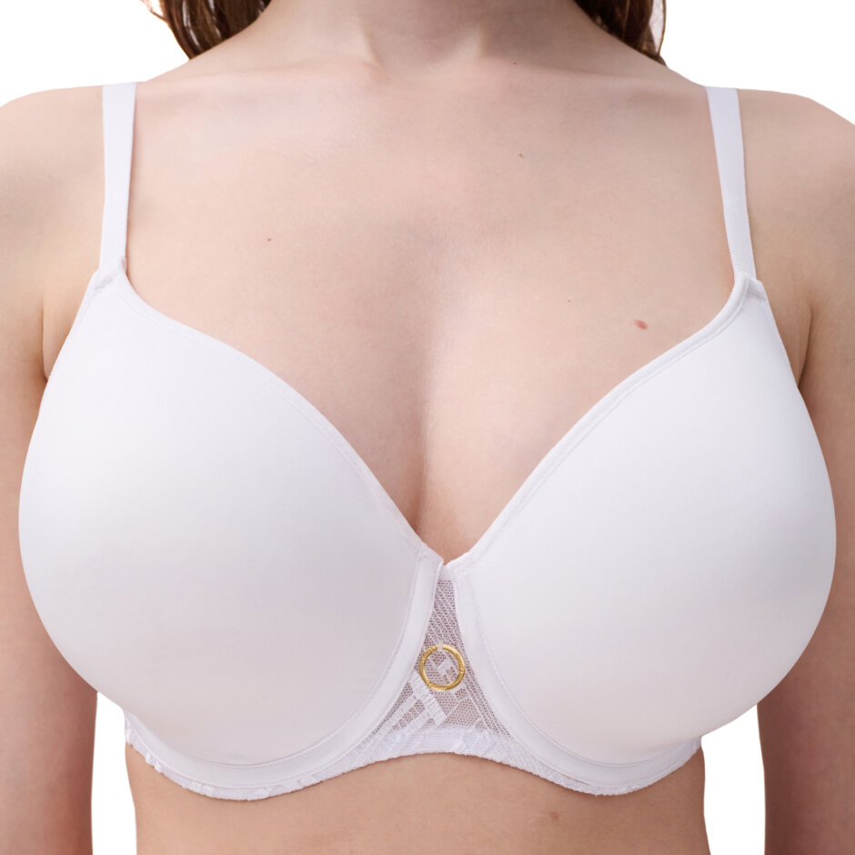 Graphic Support T-Shirt BH Hvid fra Chantelle giver en smuk rundet barm og fremragende støtte. De formstøbte memory foam-skåle tilpasser sig kroppen og sikrer komfort hele dagen. Den dobbelte rygkonstruktion kombinerer let og åndbart Spacer-materiale med et blødt, elastisk inderlag, der føles behageligt mod huden.