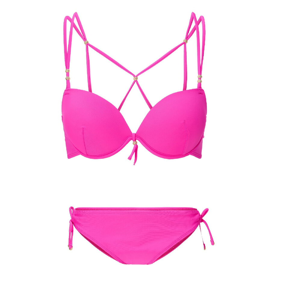 De krydsede stropper bagpå skaber et legende og moderne twist, der fuldender det sofistikerede look. Bikinitoppen fås i størrelserne A–F, 70–90 i den livlige og feminine hot pink farve.