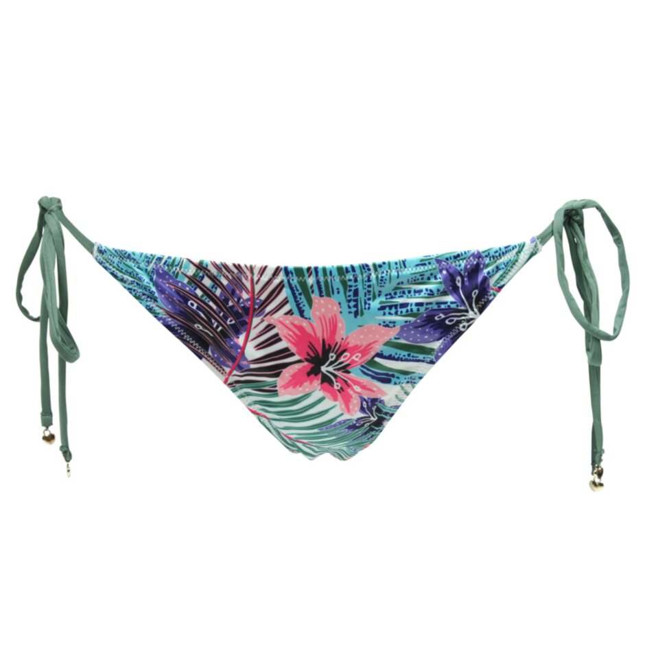 Skøn Altea Tai Trusse i fint blomsterprint. Altea Tai Trusse er en klassisk tai, som bindes i siderne og hvor der er syet små guldhjerter på i enden af snorene. Altea Tai Trusse har en behagelig pasform og kan matches med Altea Triangel Bikini Top fra samme serie.